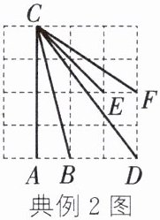 因为 CA=4,AB=1,AD=3,所以 CB²=AC²+AB²=4²+1²=17,CD²=AC²+AD²=4²+3²=25,CE²=2²+2²=8,CF²=2²+3²=13.所以长度是有理数的线段是 CA,CD,长度不是有理数的线段是 CB,CE,CF.