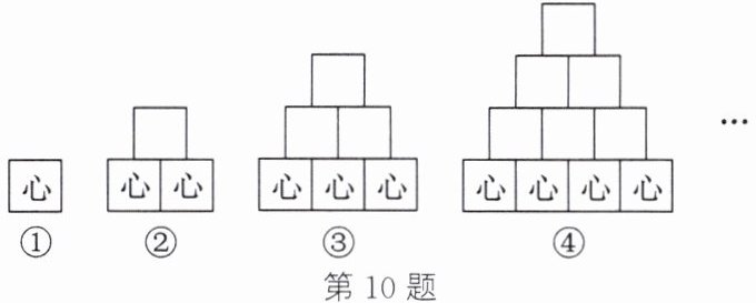 图⑩正方形总数:$\frac{10×11}{2}=55$,带“心”字的1个。