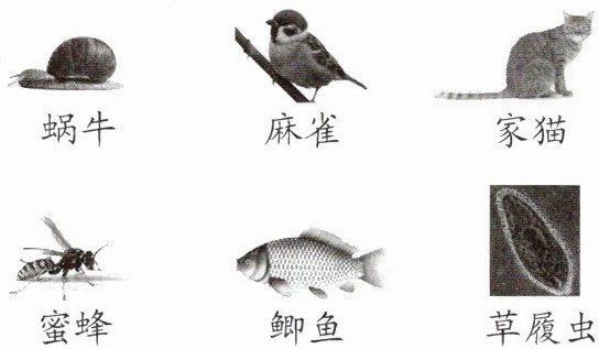 16. 将图中的六种动物分类,可以画出如下所示的分类表,其中①~⑥代表图中的六种动物。