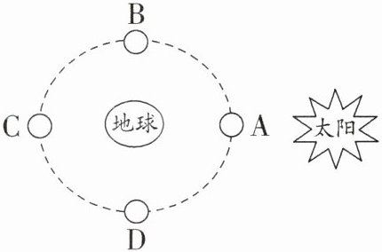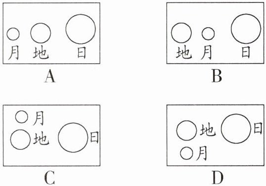7. 某天晚上,小金在天空中看见一轮满月。此时日、地、月三者的相对位置图正确的是()