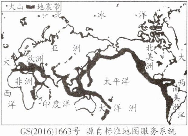 20. 读世界主要火山、地震带分布示意图,回答下列问题。