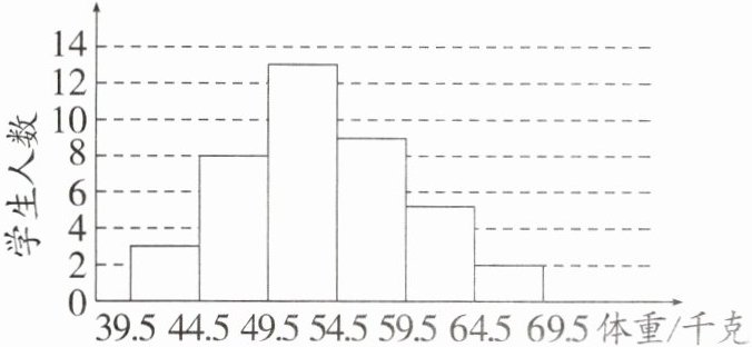 7. 如图表示某班学生的体重分布情况,以下说法中正确的是()