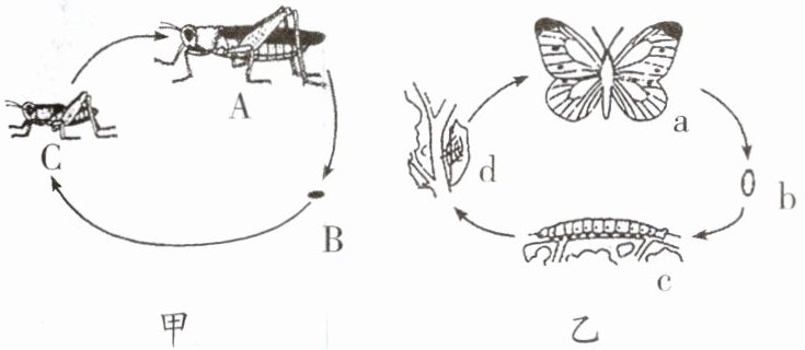 19. 如图是两种昆虫的发育过程。请据图回答下列问题。
