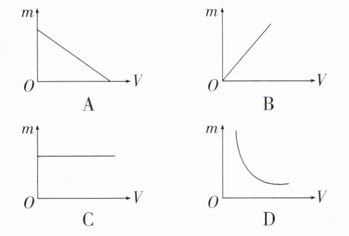 1. 下列图像中,能正确反映同种物质的质量和体积关系的是 ()