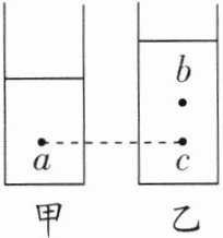 12. 如图所示,在甲、乙两个完全相同的容器中盛有质量相等的水和酒精(已知$\rho_{水}>\rho_{酒}$),其中$a$、$b$两点到液面的距离相同,$a$、$c$两点到容器底部的距离相同。