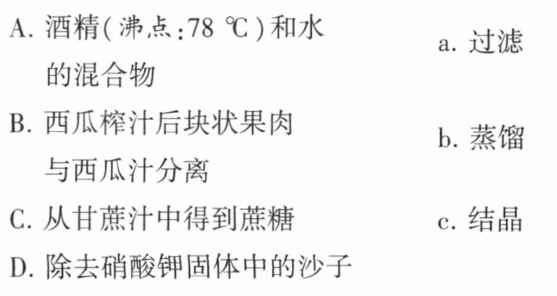 ①分离豆浆和豆渣(过滤) ②海水制粗盐(蒸馏) ③除去水中的沙子(蒸发)