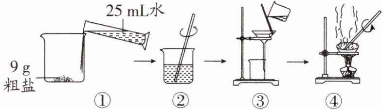 11. 20℃室温时,小科进行了粗盐中难溶性杂质去除的实验,如图所示。下列有关实验过程的分析和描述,错误的是( )