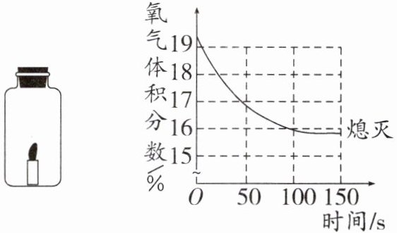 5. 蜡烛(足量)在如左图所示密闭的集气瓶内燃烧至熄灭,用仪器测出瓶内氧气含量的变化曲线如右图所示。下列判断正确的是 ( )