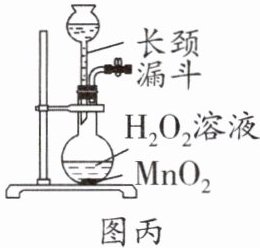 (2) 小柯利用催化剂使$H_{2}O_{2}$溶液分解制取氧气,图丙是他设计的气体发生装置,请你指出一处错误____。