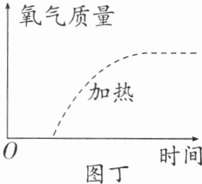 (3) 采用相同质量5%的$H_{2}O_{2}$溶液,图丁虚线表示加热分解制取氧气的曲线,请你在该图中用实线画出利用催化剂制取氧气的大致曲线。(假定两种方法,$H_{2}O_{2}$均完全分解)