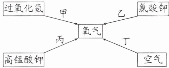 (1)过氧化氢 $ \xrightarrow{二氧化锰} $ 水 + 氧气 氯酸钾 $ \xrightarrow[加热]{二氧化锰} $ 氯化钾 + 氧气