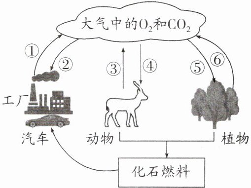 2. 如图是自然界中氧的部分循环示意图。其中没有氧气参加反应的是( )