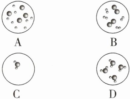下图中最能表示水汽化后在相同空间内粒子分布的是 ( )
