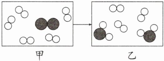 7. 如图是一个化学反应的微观模型图,其中“●”和“○”表示质子数不同的两种原子,甲、乙分别表示反应前和反应后的物质,下列说法错误的是 ( )