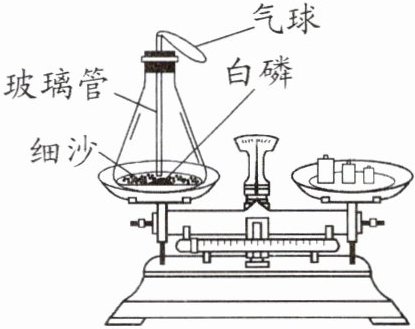 在锥形瓶中放入一小粒白磷,塞好瓶塞后玻璃管下端刚好能与白磷接触,将整套装置放在托盘天平上调节至平衡。取下橡皮塞,将玻璃管放在酒精灯火焰上灼烧至红热,迅速塞紧瓶塞,将白磷引燃,待锥形瓶冷却后观察天平是否平衡。