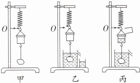 (3)把烧杯中的水全部倒入小筒中,弹簧指针又恢复到原来的位置 $ O $,如图丙所示。