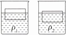 7. 一圆柱体先后放入密度为 $ \rho_{1} $ 和 $ \rho_{2} $ 的两种液体中,均处于漂浮状态,如图所示。圆柱体在两液体中所受浮力依次是 $ F_{1} $ 和 $ F_{2} $,则( )