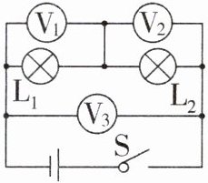 7. 如图所示,在探究“串联电路电压的关系”时,闭合开关 S 后,电压表$ V_1 $的示数是$ 2.5 V,V_2 $的示数是 3.8 V,则电压表$ V_3 $的示数是 ( )