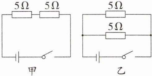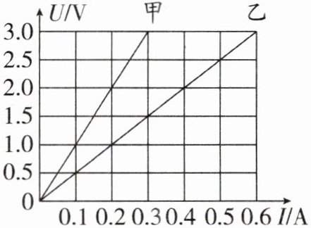 4. 甲、乙两个电阻的 $ U - I $ 图线如图所示,若把两个电阻串联接在同一电路中,下列说法正确的是 ( )