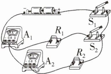 5. 如图所示的电路中,电流表 $ A_1 $ 的示数为 $ 0.5 \, \text{A} $,$ A_2 $ 的示数为 $ 0.3 \, \text{A} $,电阻 $ R_2 $ 的阻值为 $ 10 \, \Omega $。下列说法正确的是 ( )