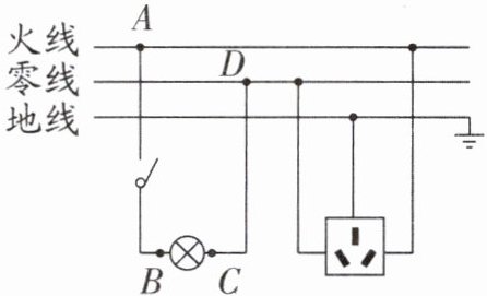 D.把开关接在 AB 之间比接在 CD 之间更安全