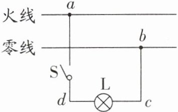 9. 如图所示,当开关 S 闭合后,发现电灯 L 不亮,用测电笔测试 c、d 两点时,氖管都发光,测试 a、b 两点时,只有 a 点氖管发光,则故障可能是( )