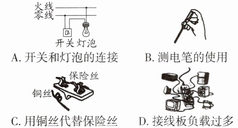 8. 某同学在家中更换台灯的灯泡时,先将一只灯泡插入灯座,灯泡正常发光,再将另一只灯泡插入该灯座的一瞬间,灯泡接口冒出火花,同时家中停电,保险丝烧断。其原因是( )