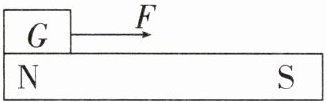 6. 如图所示,重为 G 的小铁块在水平方向力 F 的作用下,沿条形磁铁的表面从 N 极滑到 S 极,下列说法正确的是 ( )