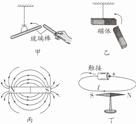 8. 电和磁存在着许多相似的地方,曾激发人们探索电和磁之间的联系;根据甲、乙、丙、丁四个情景,下列关于电和磁的描述不合理的是 ( )