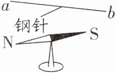 a 端靠近 N 极$\left\{\begin{array}{l}(1)______\to 钢针有磁性,a端为N极\\ 相互吸引\to a端靠近S极\left\{\begin{array}{l}相互吸引\to (2)______\\ 相互排斥\to 钢针有磁性,a端为S极\end{array} \right. \end{array}\right. \right.$