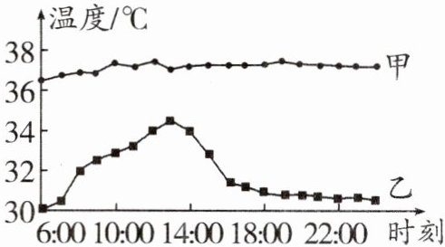 (2) 某健康学生对自己的体温及其生活环境温度进行了一段时间的测量,结果如图所示。