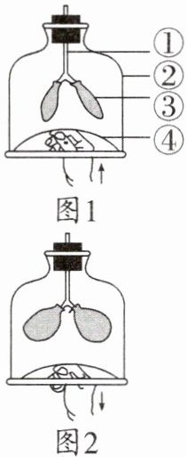 (2) 图 2 模拟的是人体在____气时膈肌所处的运动状态,此时由于膈肌的收缩,胸廓的____径增大,胸腔内压力减小,进而使肺泡扩张。
