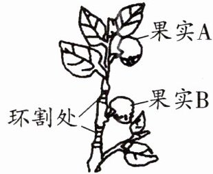5. 如图所示是长有两个大小相同的果实的一段果树侧枝,现人为对两个部位的树皮进行了环割。下列对果实的生长情况分析正确的是( )