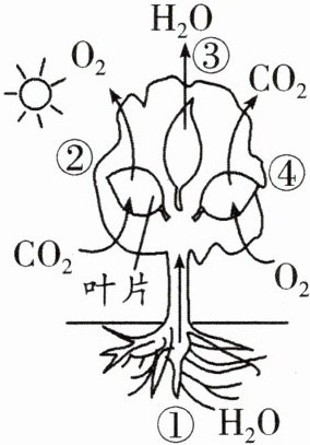 1. 如图,①②③④分别表示植物生长过程中不同的生理活动,其中③表示的是( )