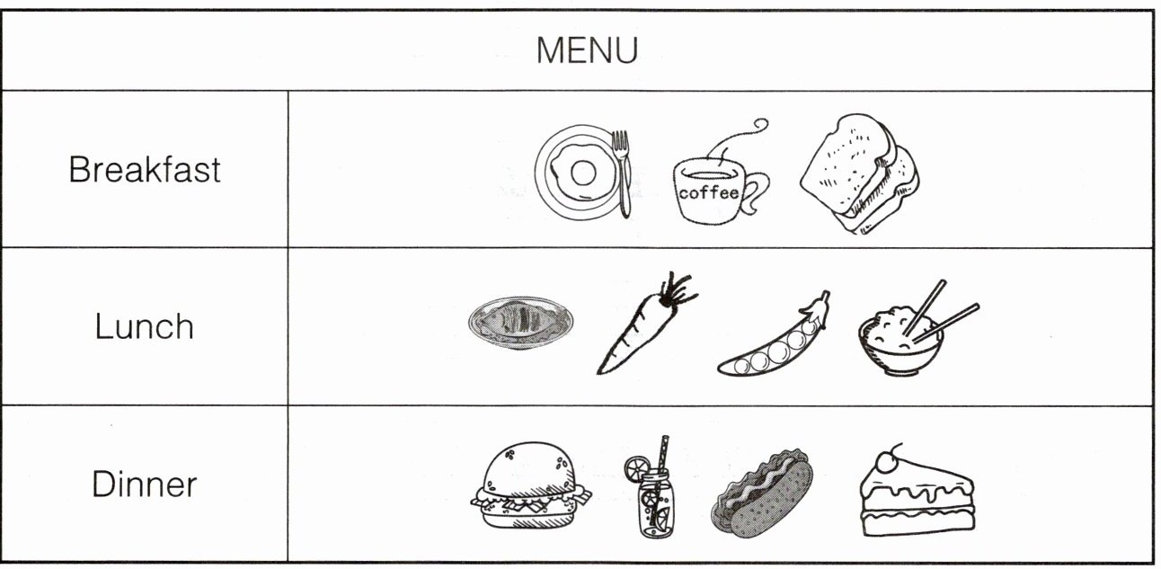 Ⅱ. (★★)以下是 Mary 昨天的三餐食谱。根据表格内容,判断句子正(T)误(F)。