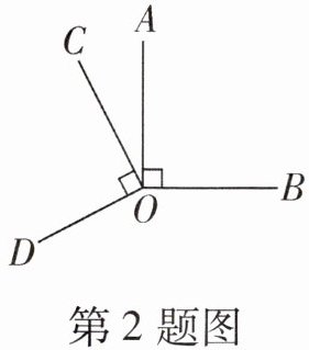 2. 如图,已知$ OA \perp OB $,$ OC \perp OD $,$ \angle AOC = 27 ^ { \circ } $,则$ \angle BOD $的度数是 (