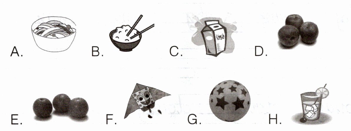 Ⅴ. (★★)根据短文,在图片中圈出玲玲要带的物品。