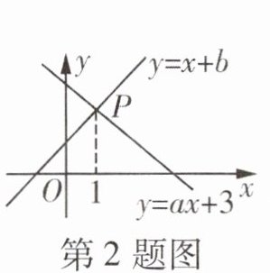 2. 如图,已知函数$y= x+b和y= ax+3的图象的交点为P$,则关于$x的不等式x+b>ax+3$的解集为