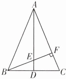 2. 如图,在$\triangle ABC$中,$AB = AC$,点$D是BC$的中点,点$E在AD$上。若$BE的延长线交AC于点F$,且$BF \perp AC$,垂足为点$F$,$\angle BAC = 45^{\circ}$,求证:$\triangle AEF \cong \triangle BCF$。