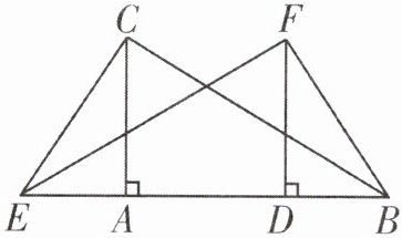 2. 如图,点$E$,$A$,$B$,$D$在同一直线上,$CA\perp EB于点A$,$FD\perp EB于点D$,$CA = FD$,$CE = FB$。