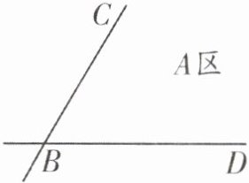 2. 在一次军事演习中,红方侦察员发现蓝方指挥部设在$A$区内(如图所示,其中$BC$表示铁路,$BD$表示公路,该图的比例尺为$1:35000$),且到公路、铁路的距离均为$350$米,$\angle CBD = 60^{\circ}$,请你在此作战图中标出蓝方指挥部的位置.