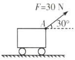 如图所示,小车受到大小为 30 N、斜向右上方、与水平方向成 30°角的拉力,画出这个力的示意图.(作用点在 A 点)