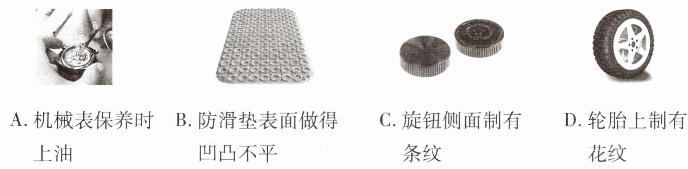 1. 如图所示的措施中,为了减小摩擦的是()