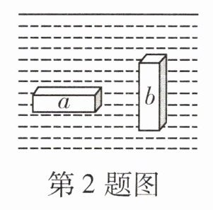 2. 如图所示,完全相同的a、b两个长方体,长度为h,浸没在密度为ρ的液体中,长方体b上下表面的液体压强差为____. 若两长方体a、b下表面所受液体的压力分别为$F_{a}$、$F_{b}$,则$F_{a}$____$F_{b}$(选填“大于”“等于”或“小于”).