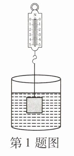 1. 如图所示,将重为G的铝块挂在弹簧测力计上,当它浸没在水中时,弹簧测力计的示数为F. 则铝块所受的浮力大小为____.