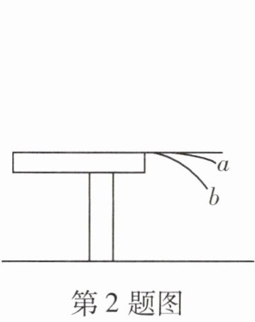 2. 取一根钢锯条,一端用手指按压在桌面上,另一只手的手指将露出桌面的一端下压至如图所示a、b两位置,手指感觉用力较大的是把钢锯条压弯至____(选填“a”或“b”)位置,这一现象说明了____.