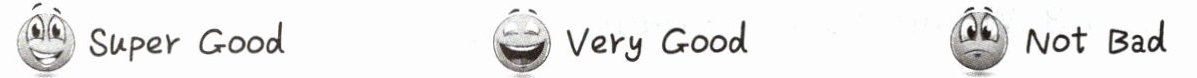 (根据实际书写情况在相应表情下打“√”,比如书写规范工整可在“Super Good”下打“√”,书写较好但有小瑕疵可在“Very Good”下打“√”,书写一般可在“Not Bad”下打“√”)。