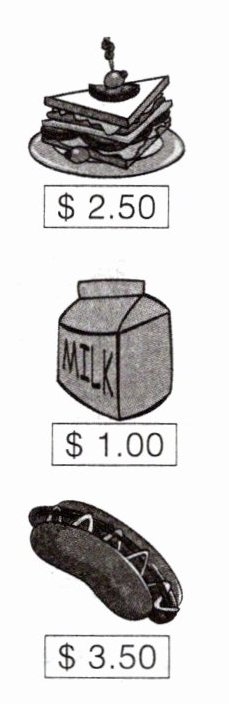 2. I want a hot dog. ;It's three dollars and fifty cents.