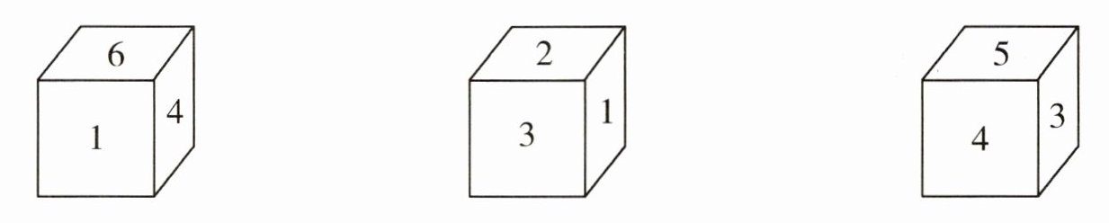 3. 一个正方体,六个面上分别写着数字1,2,3,4,5,6,从三个不同的角度观察,结果如下所示。