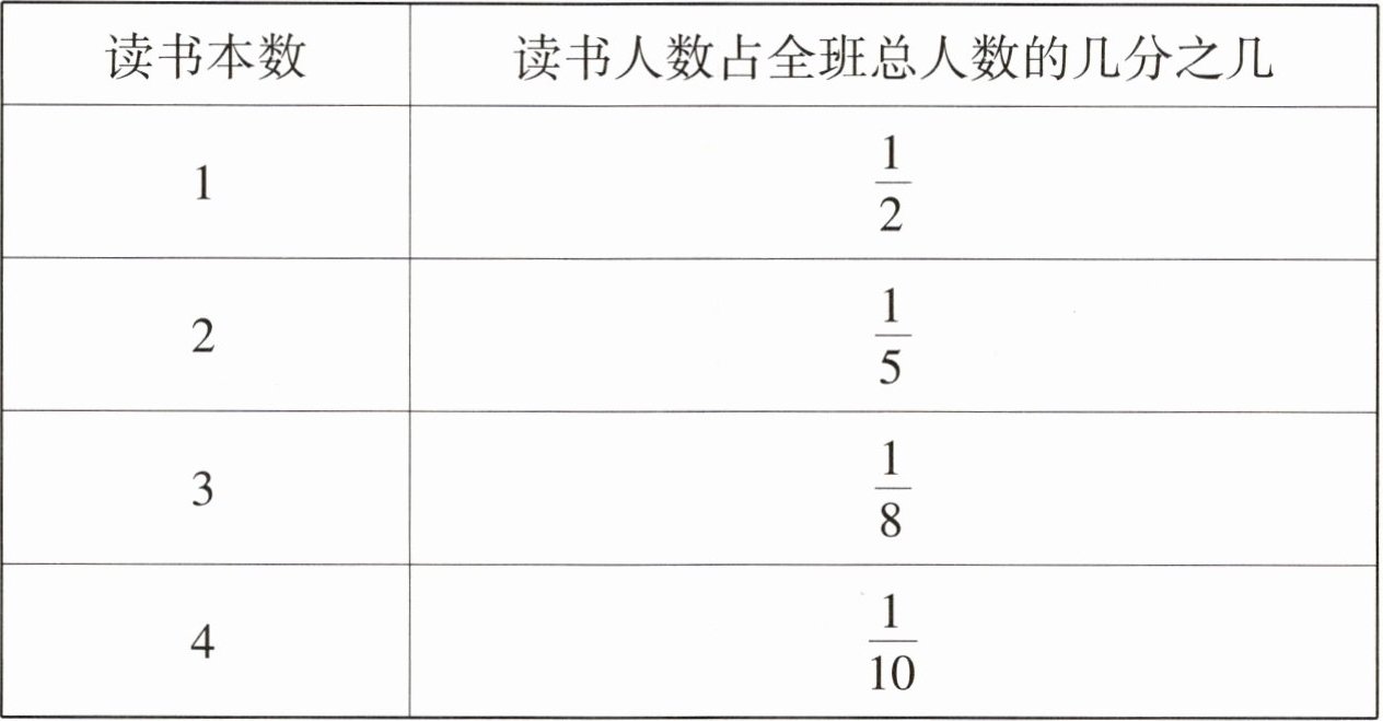 (2)读1本书和2本书的同学占全班总人数的几分之几?